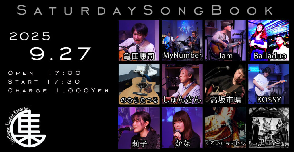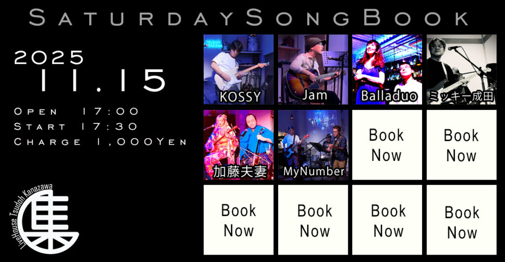 Saturday Song Book 土曜の夕方から12組のブッキングライブ