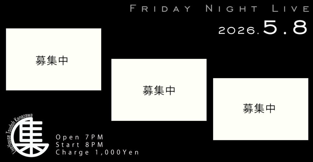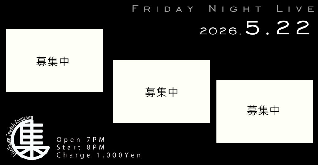 金沢駅前エリアにあるLiveHouse Tsudoh Kanazawaで毎週金曜日の夜に開催されているライブ。