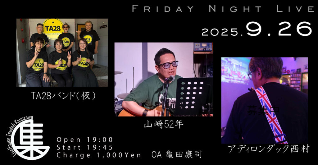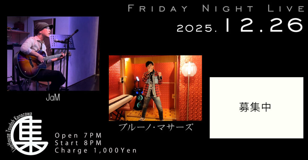 金沢駅前エリアにあるLiveHouse Tsudoh Kanazawaで毎週金曜日の夜に開催されているライブ。
